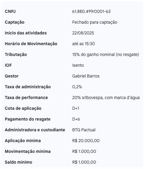 Sem pressa, sem metas de captação — apenas convicção de que o longo prazo recompensa uma estratégia correta e com aplicação disciplinada.”
