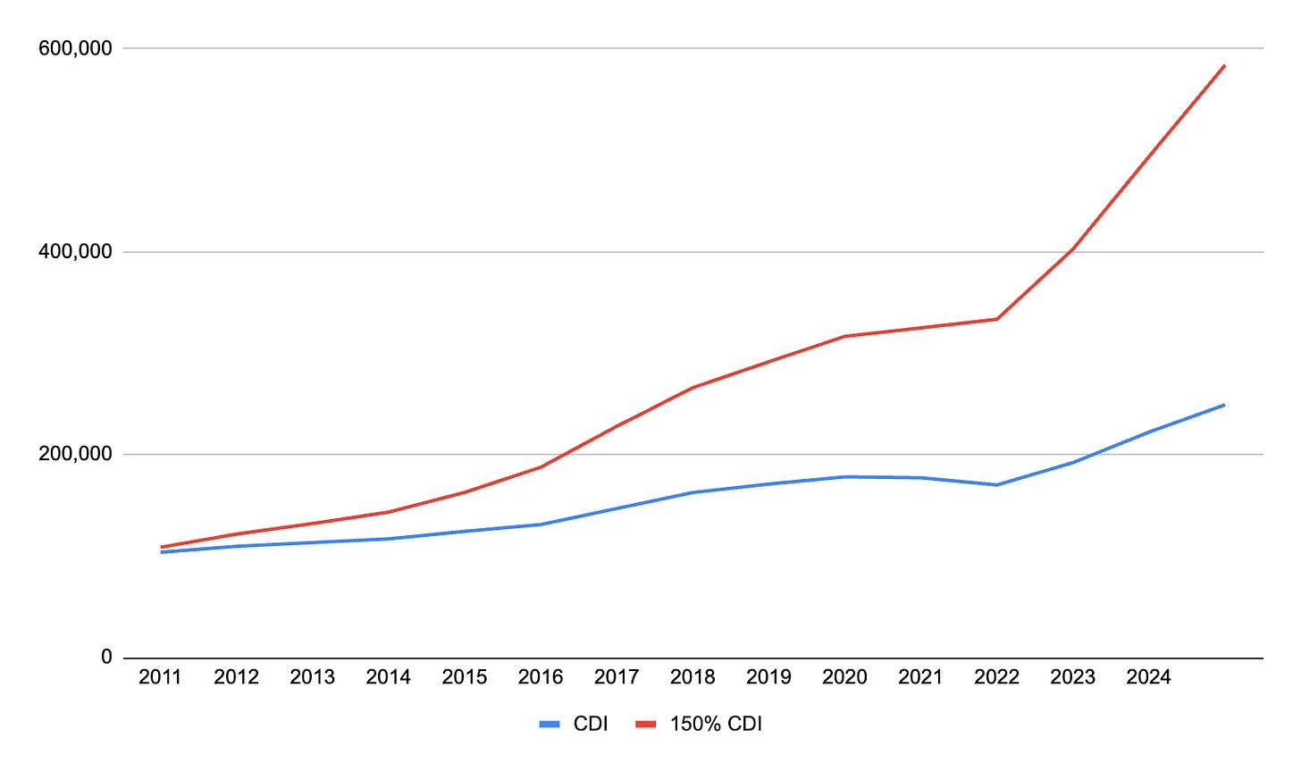 R$ 583 mil aplicando a 150% do CDI.